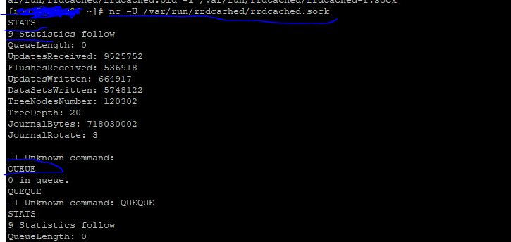 After we connected successfully, we can issue some commands to see what rrdcached is doing.